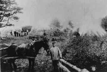 Bij de foto: Houtskoolbranden aan de Weijenborgerdijk rond 1900.