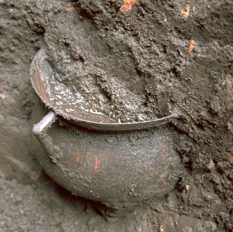 Dit soort kookketels waren kostbare erfstukken die van generatie naar generatie gingen. Ook een kapotte ketel zou vanwege het brons nog een aanzienlijke waarde vertegenwoordigen. Hij moet, meer 400 jaar geleden, dus wel haast per ongeluk in de gracht beland zijn.