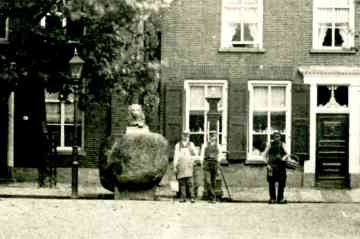 Bij de foto: Op de steen werd een liggende leeuw geplaatst