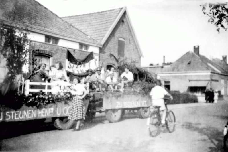 De twee platte wagens van het `Thuisfront` in de Raadhuisstraat in Lichtenvoorde