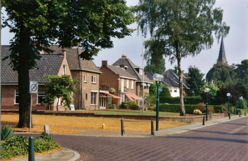 Straatbeeld Raadhuisstraat hoek varsseveldseweg, met achterzijde Gemeentehuis.